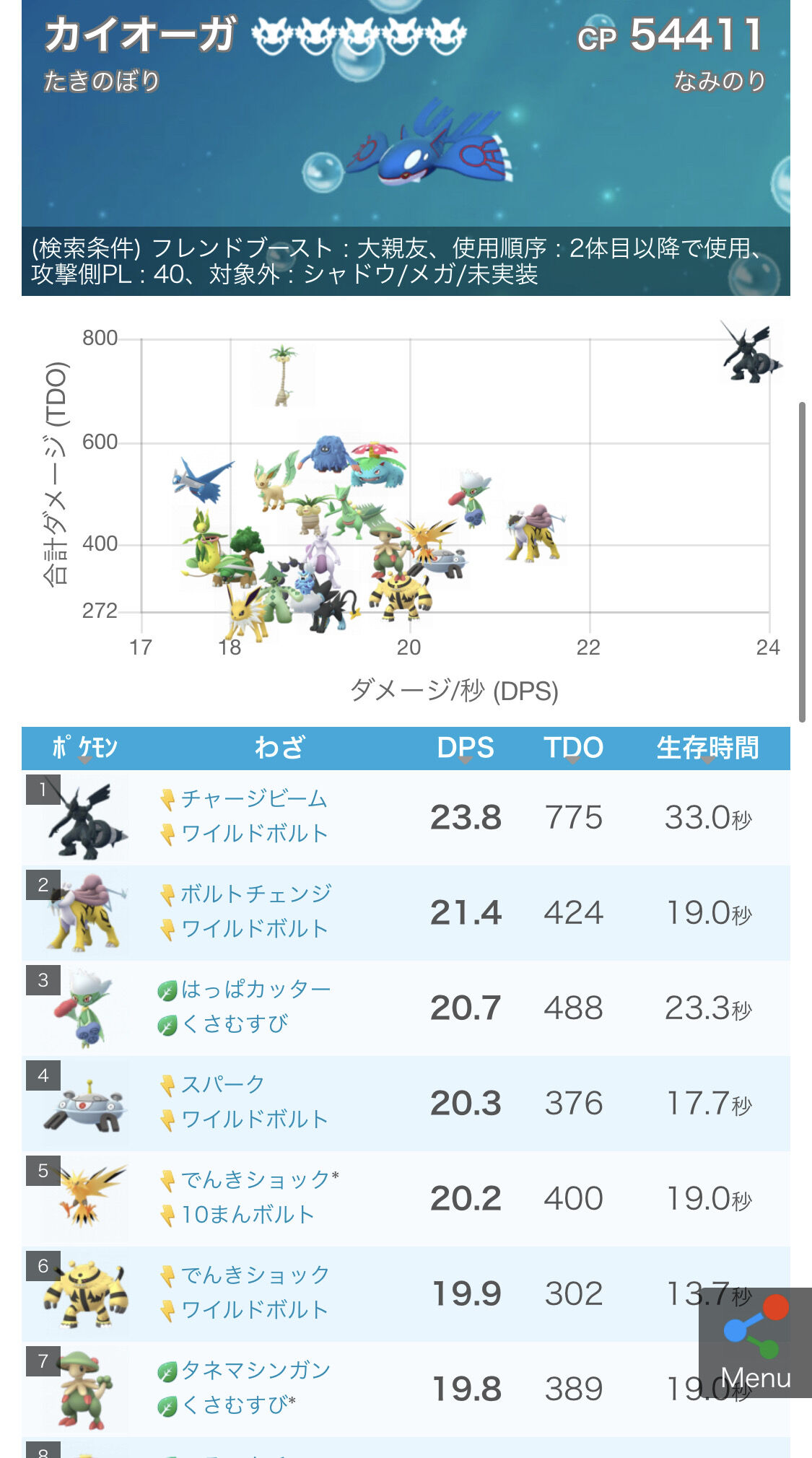 カイオーガレイドなら全ての技でゼクロムはDPSトップ